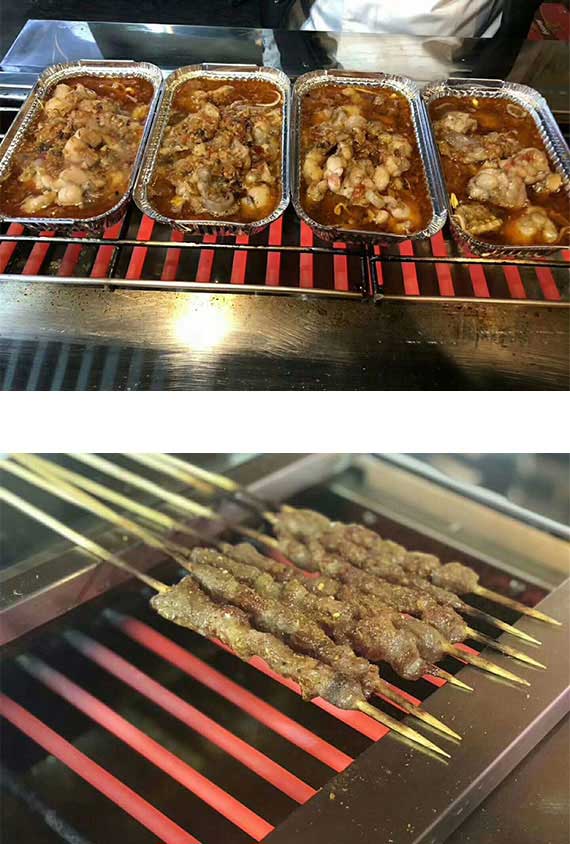 Product Features  Grilled skewers, grilled seafood, grilled vegetables and other ingredients.